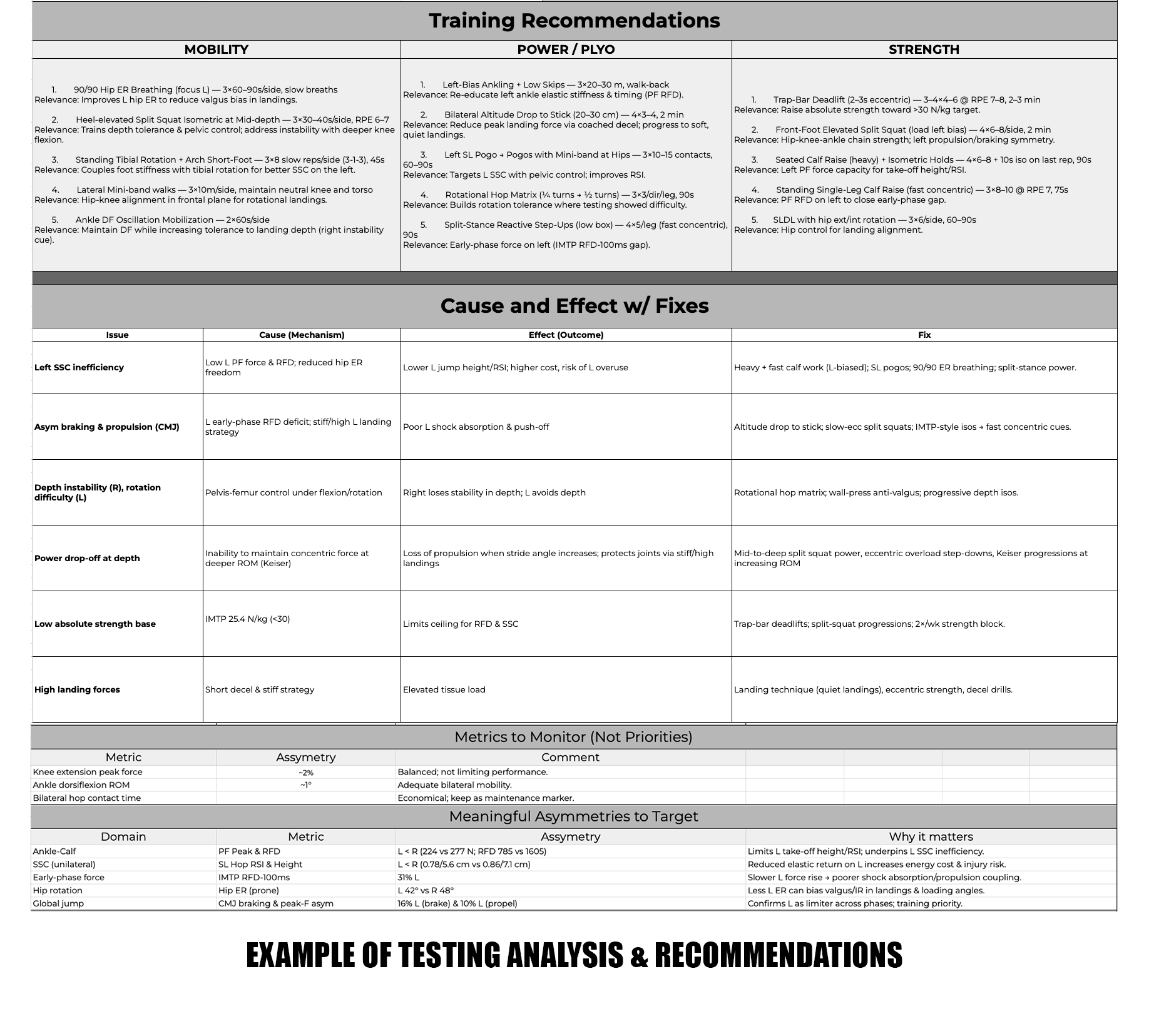 In short, we identify potential injury sites before the issues arise and pinpoint the areas where effort should be placed to increase your performance.